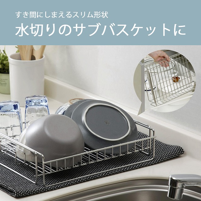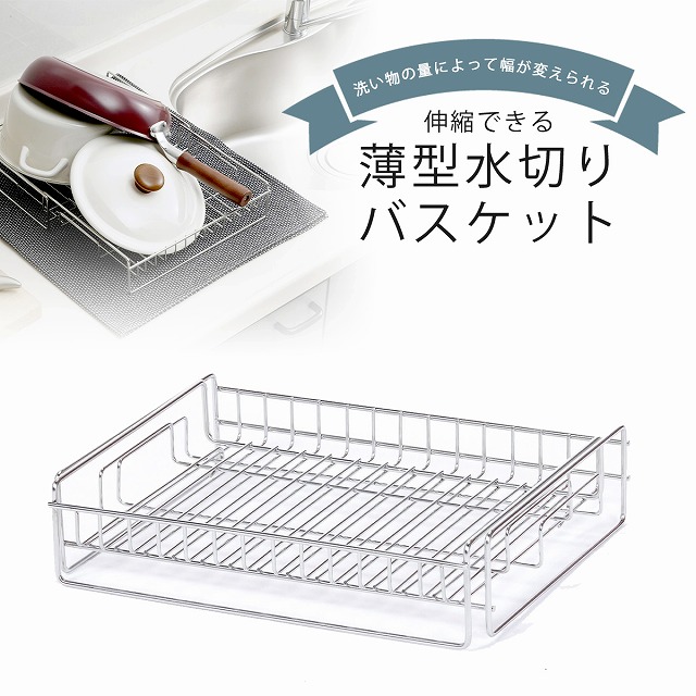 伸縮できる 薄型 水切りバスケット 日本製 水切りラック コンパクト 水切りラック伸縮 省スペース ステンレス 丈夫 清潔 水切り 水切りカゴ 水切りかご 長持ち 下村企販 燕三条 ツバメ スッキリ
