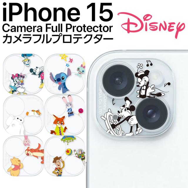 ディズニーキャラクターデザインのiPhone 15/15 Plus/14/14 Plus用 カメラフルプロテクターです。