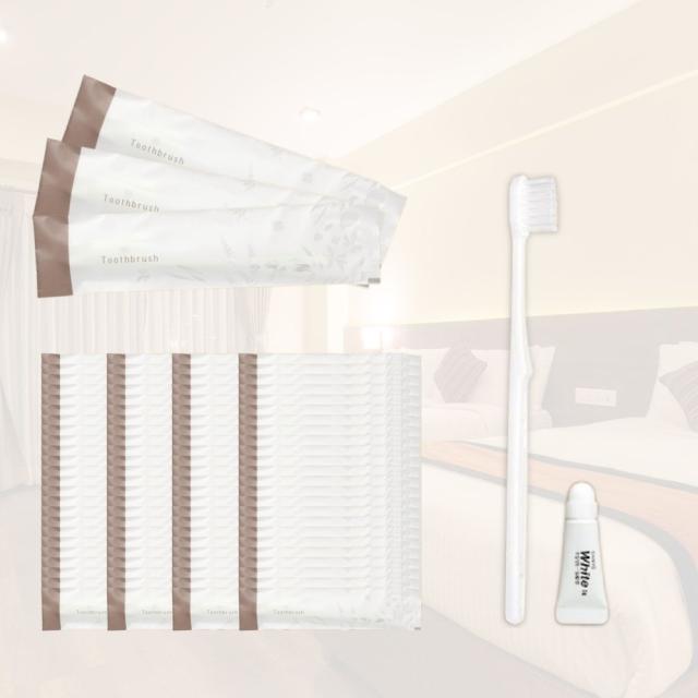 歯ブラシ ホテルアメニティ 業務用 使い捨て 100本 〈 日本製 /上品 高級感 個包装 〉166mm / 歯磨き粉 3g まとめ買い セット