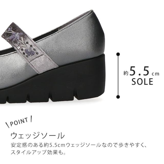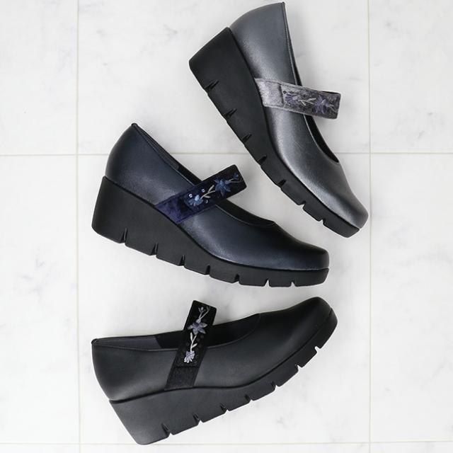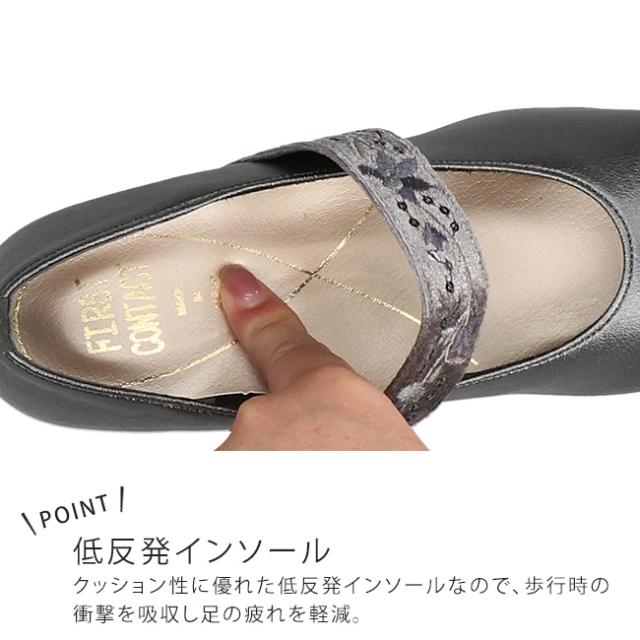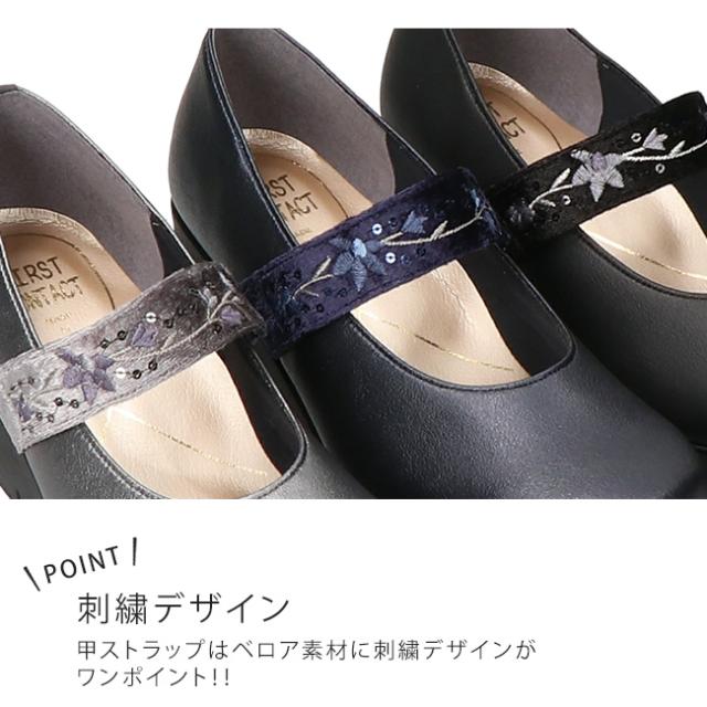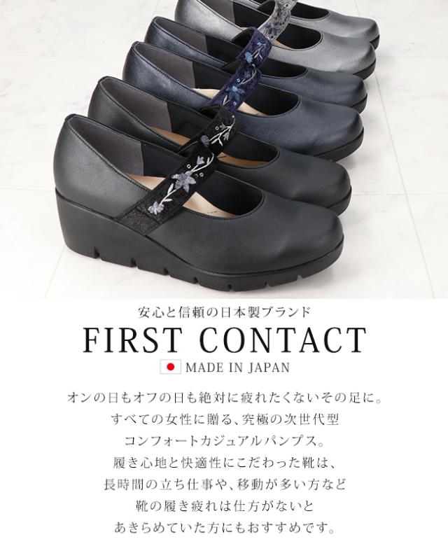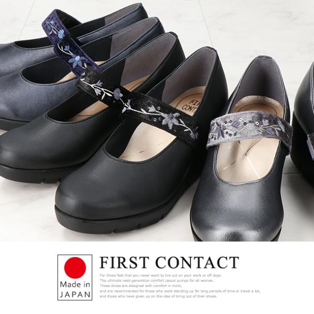 ファーストコンタクト パンプス 厚底 痛くない 履きやすい 歩きやすい ストラップ 疲れない 柔らかい 脱げない ウェッジソール ラウンドトゥ 2E相当 軽量 レディース おしゃれ かわいい 39611 日本製 通勤 シューズ 靴