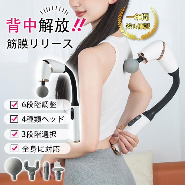 マッサージガン 軽量 筋膜リリースガン 背中 マッサージ マッサージ機 筋膜リリースガン 全身 マッサージ器 4種類ヘッド 6段階強度 腰 足 肩 首