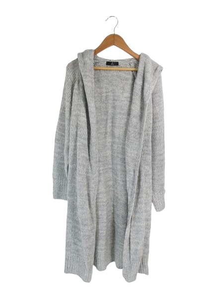 【中古】イネド INED ウール ニット カーディガン フード 前開き 長袖 モヘヤ混 無地 サイズ9 グレー QQQ レディース