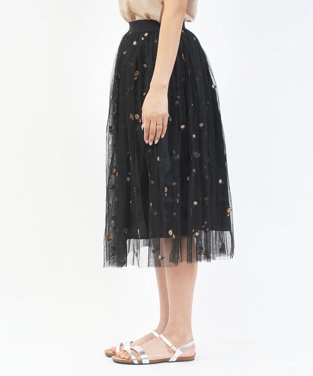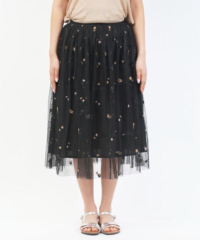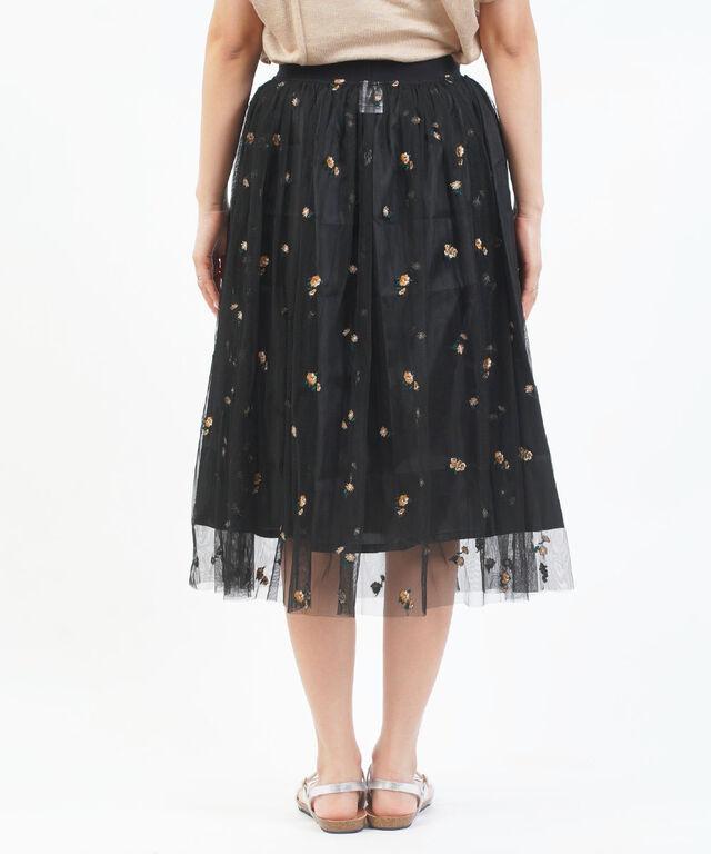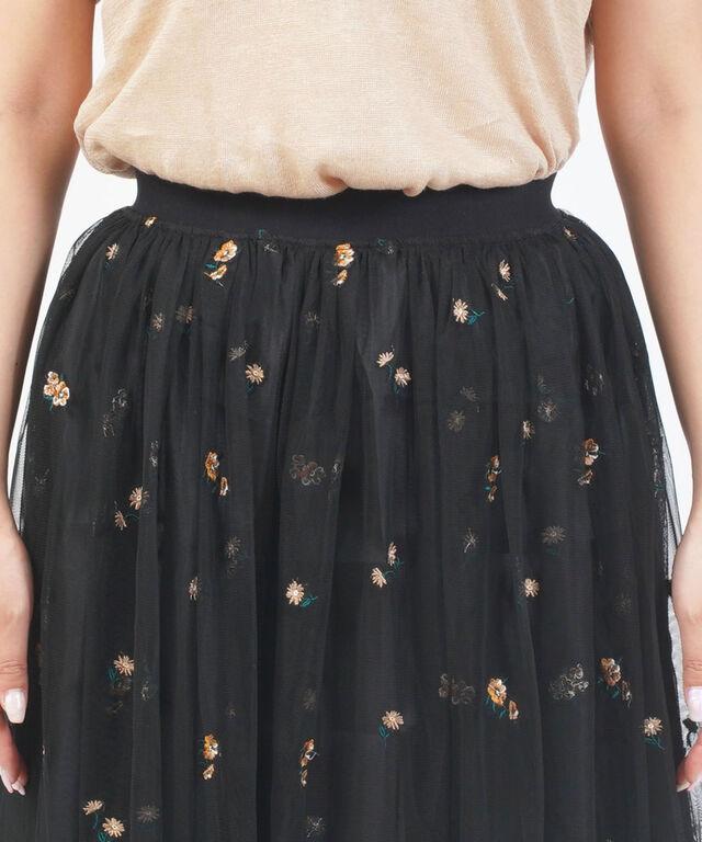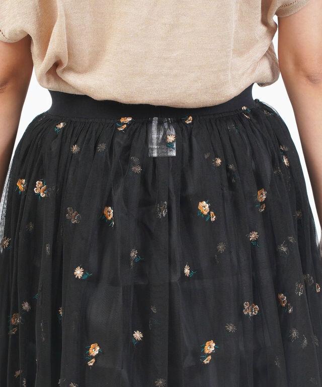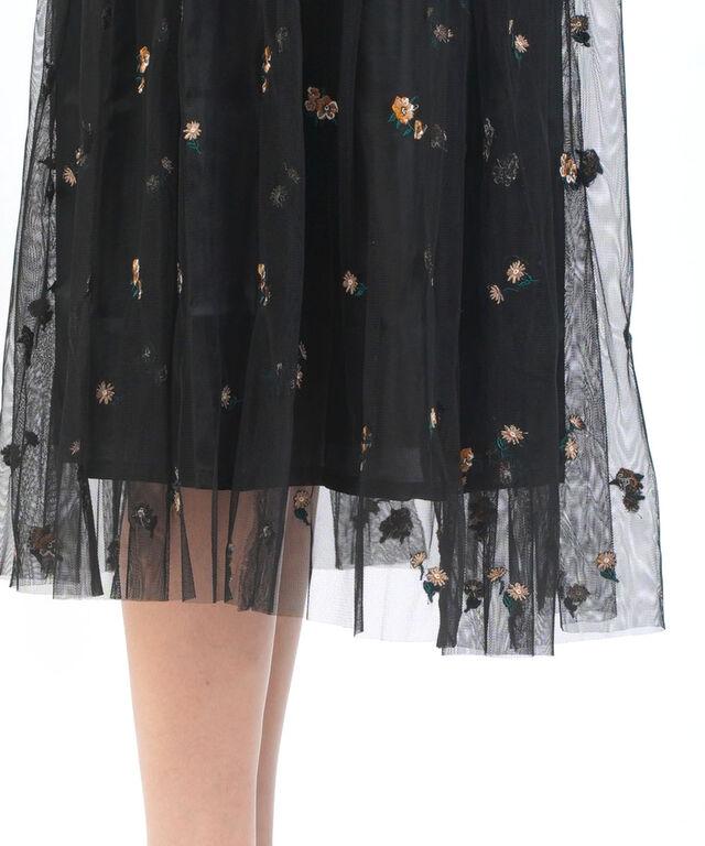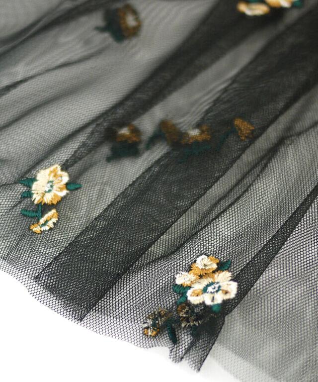 繊細なチュールに、フラワー刺繍をあしらったスカート。