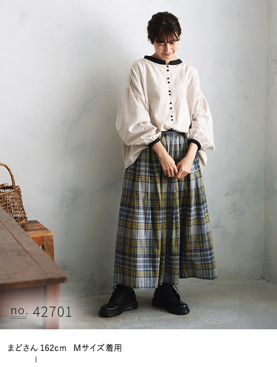 【ついに再入荷!】はちみつ堂 ふた色ブラウス レディース シャツ 長袖 パフスリーブ ノーカラー バンドカラー トップス