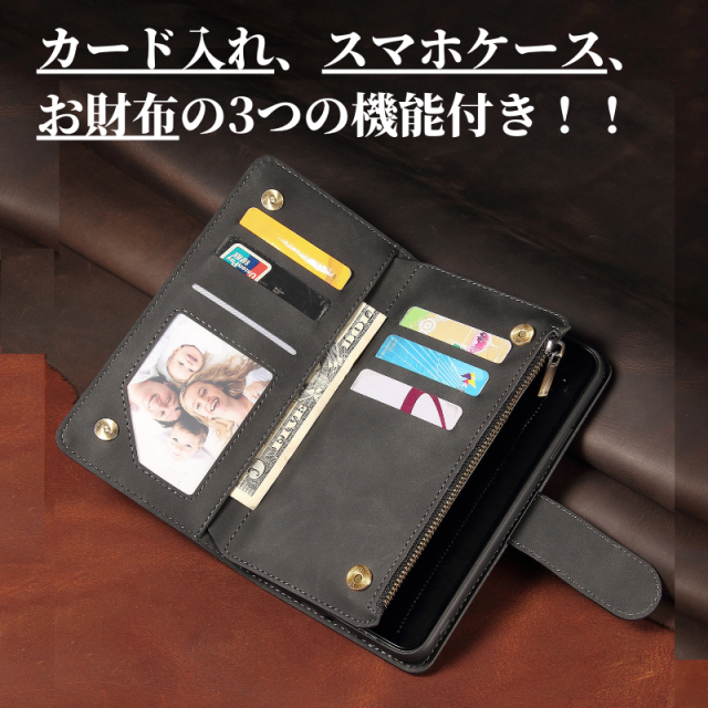Xiaomi ケース 手帳型 お財布 レザー カードケース ジップファスナー収納付 スマホケース 手帳 シャオミ レッドミ Xiaomi 14T 14T Pro 13T 13T Pro 12T 12T Pro Redmi Note 13 Pro 5G Note 11 Pro 5G 12 5G 14C 13C 12C ブラック