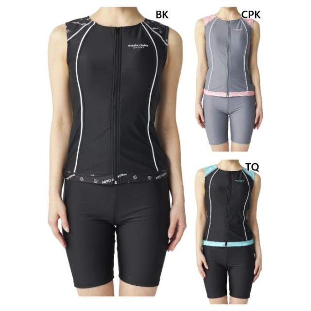 マリクレール レディース 配色フルジップセパレート スイムウエア スイミング 水泳 フィットネス水着 ブラック 黒 ブルー 青 ピンク 送料無料 marie claire 315300