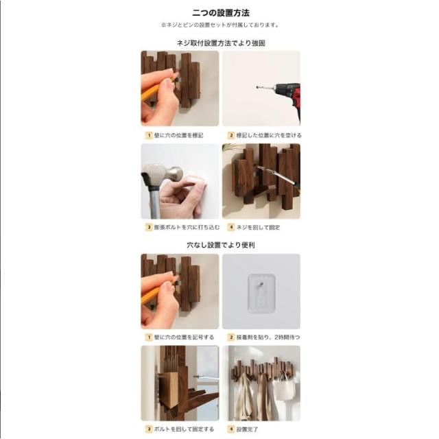 ウォールハンガー 石膏ボード 壁掛けフック ウォールフック コートハンガー 賃貸 壁掛け 木製 4連 6連 8連 10連 12連 玄関 北欧 スリム 壁 キッズ 壁付け 頑丈 コンパクト 収納 木 洋服 おしゃれ 壁掛けハンガー ハンガー 壁掛け式 おしやれ 衣類収納 賃貸OK