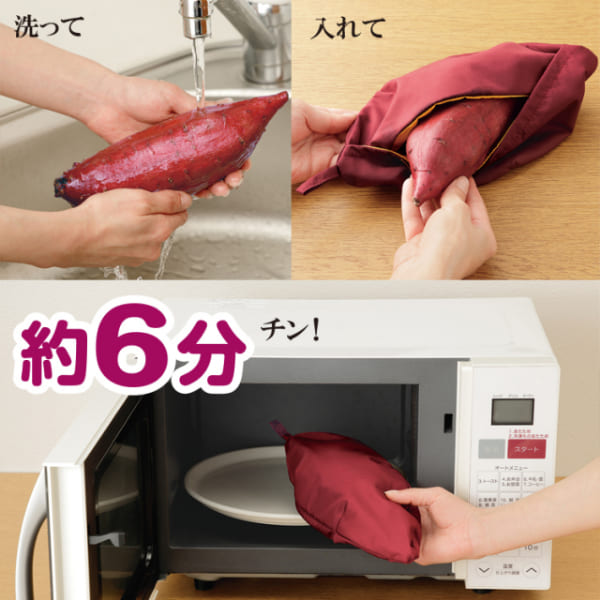 手軽においしい焼き芋を作る便利な焼き芋器です。操作は非常に簡単!さつまいもをポーチに入れてレンジでチンだけ、自宅で手軽に焼き芋を楽しむことができます。コンパクトなので、キッチンに置いても場所を取りません。使わない時は収納もしやすく、そのままバックに入れて持ち歩ける便利グッズ。焼き芋の仕上がりは、さつまいもの甘みがしっかりと引き出され、自然な甘さを存分に楽しむことができます。 また、レンジで焼き加減を調整できるため、自分好みの焼き加減に仕上げることができるのも嬉しいポイントです。さつまいも以外にも、じゃがいもやトウモロコシ 他の根菜類にも対応しており、様々なレシピを試すことができます。■内部で水分調整することでほっこり焼き芋風に■食べたいときに食べたい分だけを調理可能■火を使わないから簡単安全■600Wで約6分、片付けの手間もいらないスピード調理■さつまいも、じゃがいも、トウモロコシなどもOK■見た目もカワイイ焼き芋モチーフ、携帯用にもぴったり※電子レンジ専用です。