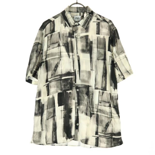 ZARA ザラ 総柄 半袖 シャツ S ブラック メンズ
