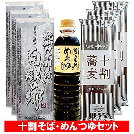 十割そば 乾麺 めんつゆ セット 送料無料 十割蕎麦 ギフト 幌加内そば 白銀の郷 3束 / 幌加内蕎麦 無塩 食塩 ゼロ 十割そば 3束 / ほろかない めんつゆ 1本 そば 十割 蕎麦 10割 麺類 調味料 箱入り 熨斗対応
