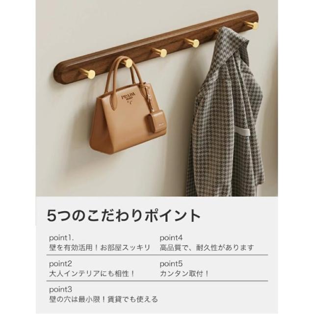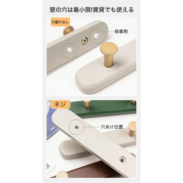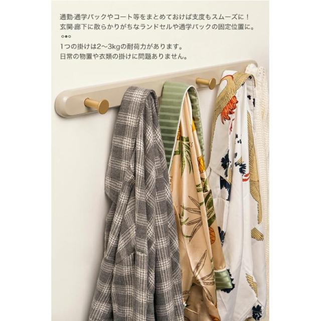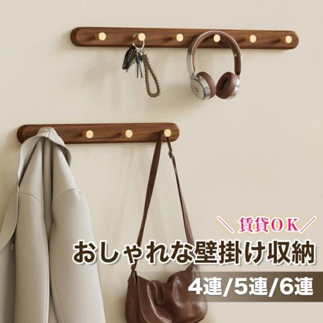 ウォールハンガー 木製 壁掛けフック ウォールフック コートハンガー 賃貸 壁掛け 木製 4連 5連 6連 玄関 北欧 スリム 壁 キッズ 壁付け 頑丈 コンパクト 収納