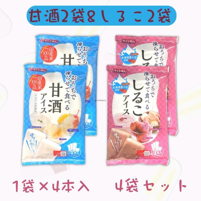 谷尾食糧工業 おうちで凍らせて食べるアイス4袋セットです。(おしるこ 2袋, 甘酒 2袋)〔 常温 で家に帰ってから 凍らせて食べる アイス 〕