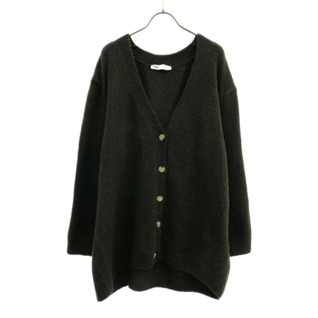 ザラ 長袖 Vネック ニットカーディガン S カーキ系 ZARA レディース