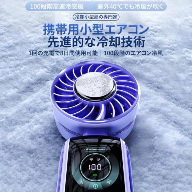 扇風機 ハンディファン 静音 小型 2025 大風量 100段階 手持ち 小型 戸外 携帯扇風機 節電 軽量 Type-c充電 冷却プレート エアコン風 LEDデジタル表示 暑さ対策