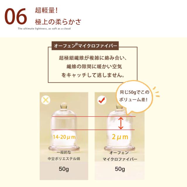 - とても軽くて、肌触りも良いです。そして、布団に入ると、次第に温まり、朝まで熟睡しています。