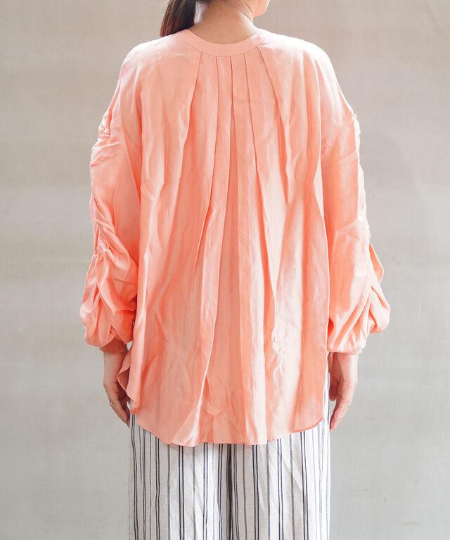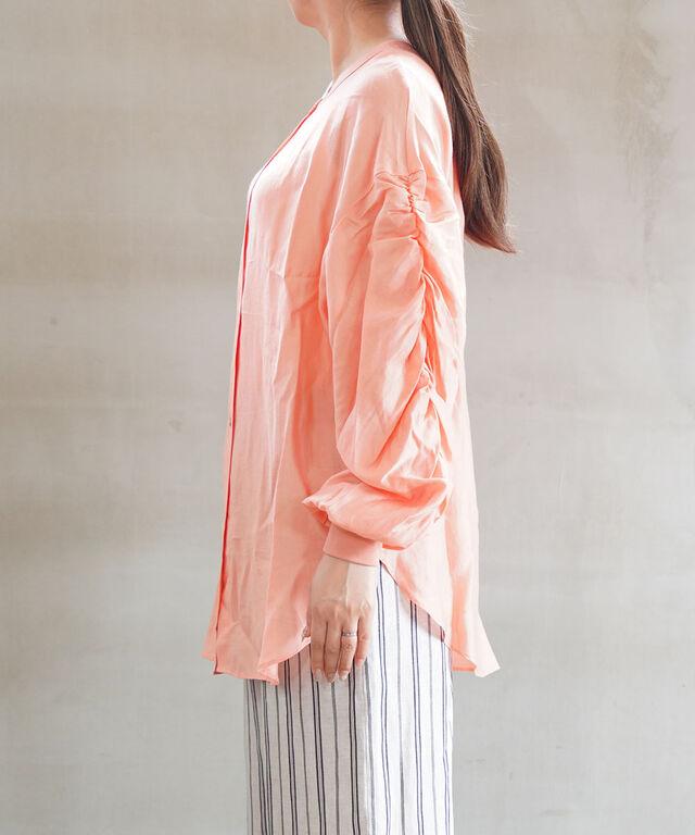 袖部分には大胆なシャーリングを施しました。