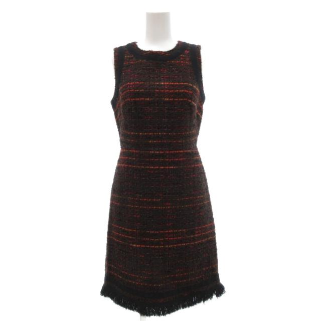 【中古】ケイトスペード KATE SPADE ワンピース ツイード フリンジ ノースリーブ ひざ丈 00 赤 レッド 黒 ブラック