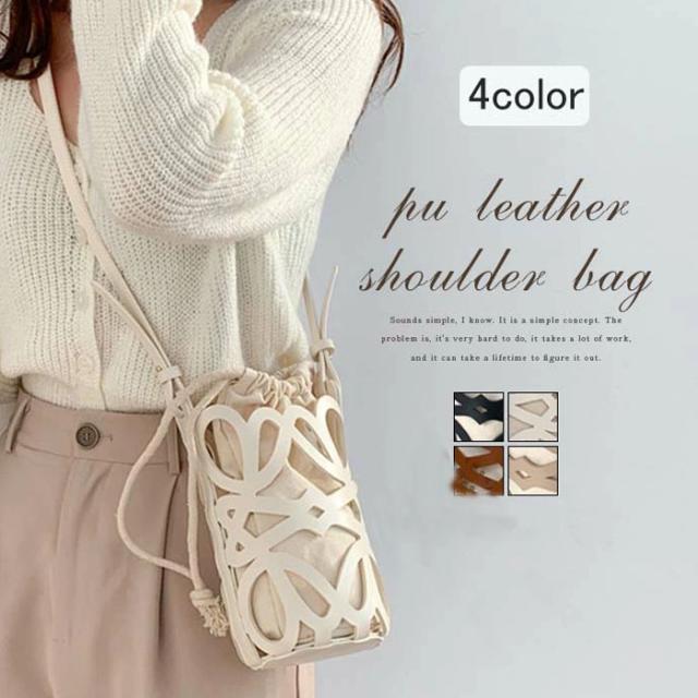 ショルダーバッグ レディース かごバッグ ショルダー バッグ 斜め掛けバッグ スマホショルダーバッグ レザーかごバッグ 巾着バッグ カットワーク スマホポーチ バケツバッグ かわいい 合皮