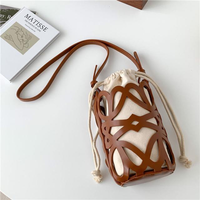ショルダーバッグ レディース かごバッグ ショルダー バッグ 斜め掛けバッグ スマホショルダーバッグ レザーかごバッグ 巾着バッグ カットワーク 合皮 スマホポーチ ショルダー バケツバッグ かわいい ミニポシェット