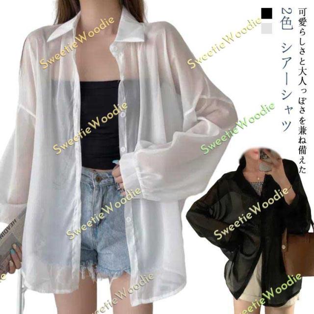 UVカット ブラウス シンプル 日焼け止め 透け感 シアーシャツ 前開き 長袖 シャツ レディース 重ね着 おしゃれ トレンド 透け感 オーバーサイズ