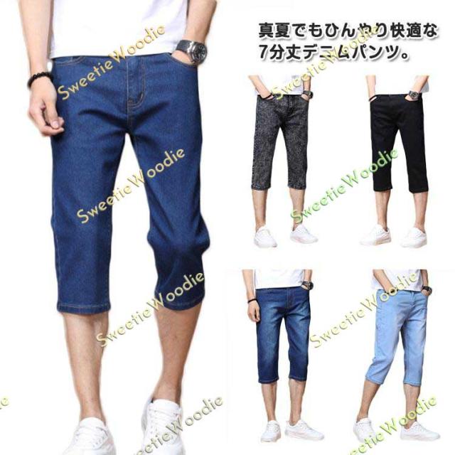 メンズ クロップドパンツ スキニーパンツ デニムパンツ アンクルパンツ 7分丈 スキニー デニム パンツ ジーンズ ストレッチ 接触冷感 ひんやり デ