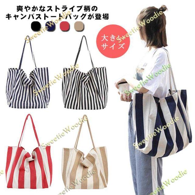 トートバッグ キャンバス ストライプ柄 大きめ 大きいサイズ キャンバス 帆布 トート 肩掛け 鞄 かばん カバン レディース キャンバスバッグ ママ