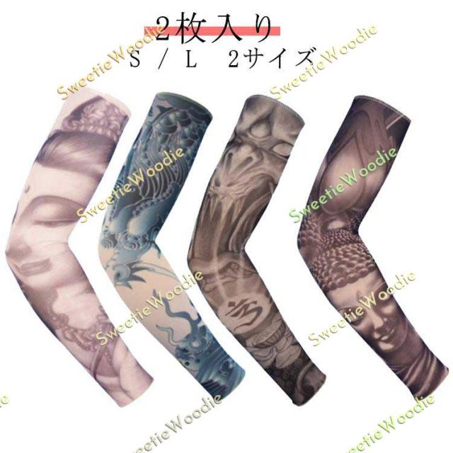 アームカバー アームカバー 2枚入り 日焼け防止 メンズ タトゥースリーブ タトゥー おしゃれ 紫外線カット タトゥー風アームカバー アーム カバー