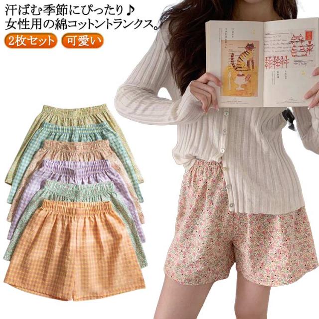 インナー レディース ナイトショーツ 2枚組 コットン ふんどしショーツ パジャマ 下着 鼠径部 2枚組 おやすみ 涼しい 可愛い 締め付けない 花柄 チェック柄 黒ずみ 女性用 産後 術後 敏感肌 下着