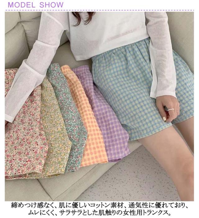 | 2枚セット!汗ばむ季節にぴったり♪女性用の綿コットントランクス。 締めつけ感なく、肌に優しいコットン素材、通気性に優れており、ムレにくく、サラサラとした肌触りの女性用トランクス。 足の付け根を締めつけないので、黒ずみやむくみが気になる方にもおすすめ。 湯上がり時さっと着て、極上なリラックスをGET。 オシャレなデザイン、おうち時間のルームパンツとしてもお勧めです。 | |