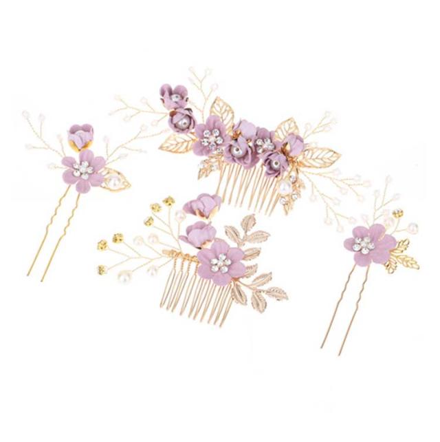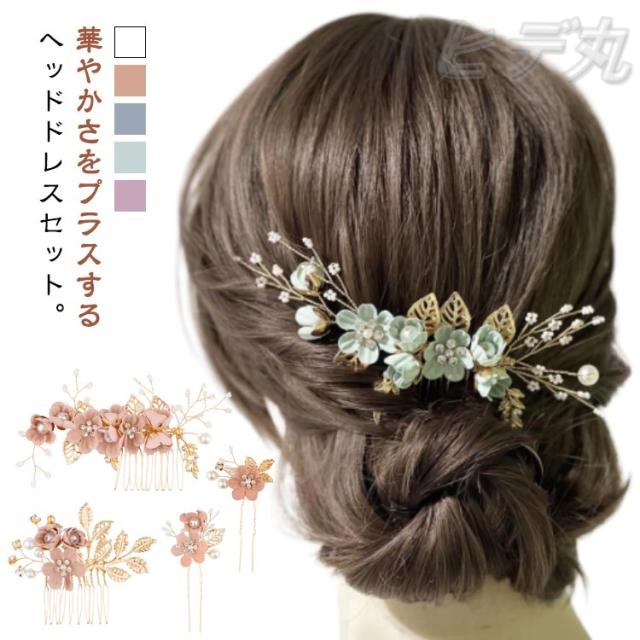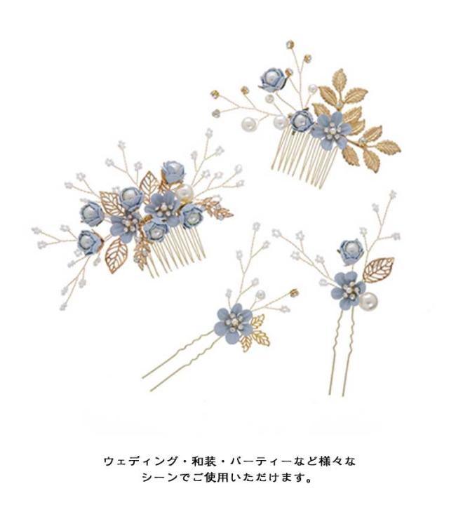 Uピン 髪飾り 髪飾り 4点セット 卒業式 七五三 セット 花 華やか コーム 4点セット パール フラワー 浴衣 髪飾り ヘアアクセサリー かんざし ウェディング 成人式 披露宴 ヘッドドレス 二次会 ヘアピン 入学式 パーティー 和装用 髪飾り水引 紐 金箔 和装