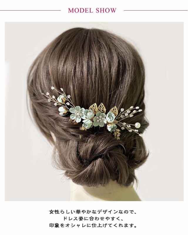 | 華やかさをプラスするヘッドドレスセット。 女性らしい華やかなデザインなので、ドレス姿に合わせやすく、印象をオシャレに仕上げてくれます。 クシのような形をしたコームタイプを採用。髪の量なども関係なく使うことができとっても便利です。 ウェディング・和装・パーティーなど様々なシーンでご使用いただけます。 | |