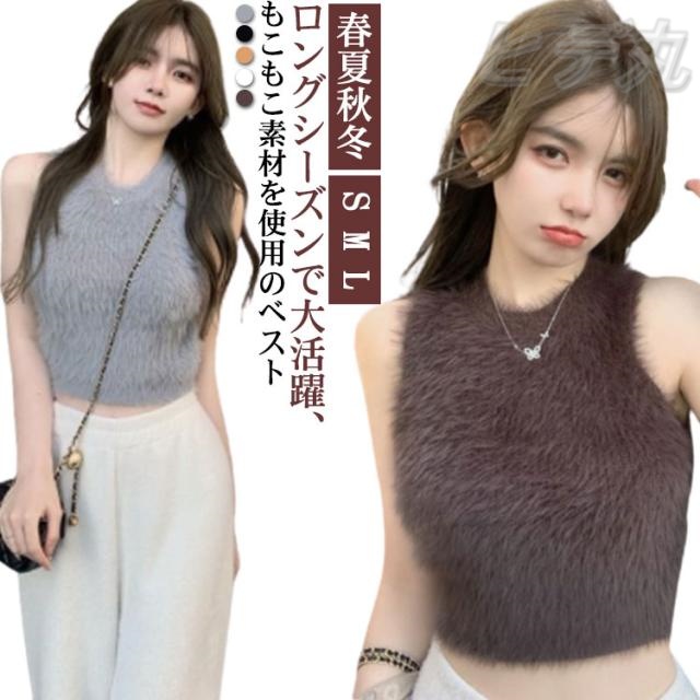 ファーベスト フェイクファー インナー キャミソール ノースリーブ きれいめ 春夏秋冬 大人可愛い トップス ふわふわ モコモコ レイヤード タンクトップ へそ出し 袖なし エレガント ダンス ショート丈 へそ出し おしゃれ かわいい 送料無料 ギフト S M L