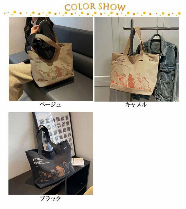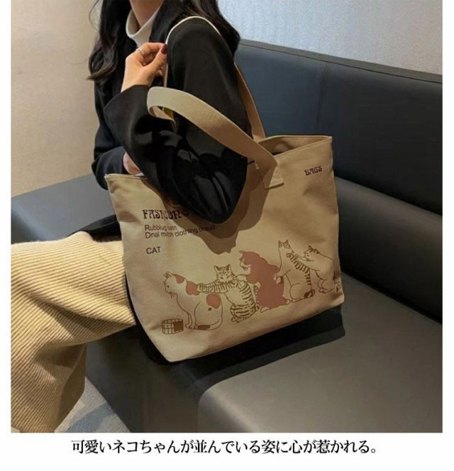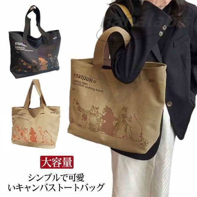春物新作 帆布 トートバッグ キャンバス バッグ A4 ファスナー付き エコバッグ レッスンバッグ 軽量 大容量 送料無料 猫 カバン 布 通学 体操バッグ 部活 通学 ネコ