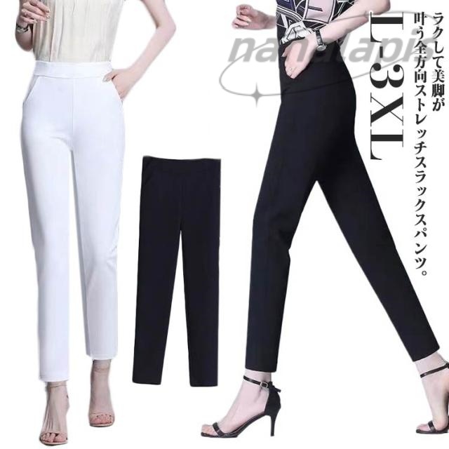 | L-3XL!ラクして美脚が叶う全方向ストレッチスラックスパンツ。 魅力的なスラックス。伸縮性がないポリエステル素材。 上品な見た目からは想像できないリラックス感が自慢。 オンもオフも頼れる!流行りや季節に左右されないなデザインで、お仕事・お出掛け・家事・育児に至るまで幅広く活躍。 | |