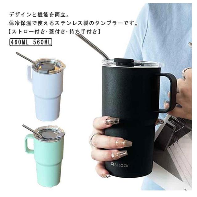 タンブラー 保温 保冷 ストロー付き 蓋付き ステンレス 水筒 ボトル 二重構造 真空断熱 560ml 大容量 直飲み 持ち手付き ステンレスタンブラー コーヒータンブラー コーヒーカップ マグボトル ドリンクボトル おしゃれ 持ち運び ドライブ 車 アウトドア 【送無】
