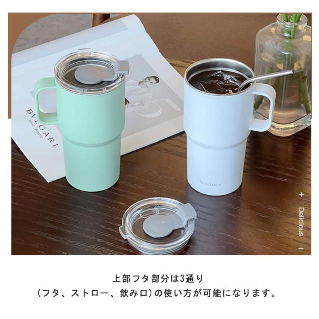 | デザインと機能を両立。保冷保温で使えるステンレス製のタンブラーです。【ストロー付き?蓋付き?持ち手付き】 真空断熱構造により長時間冷たさをキープします。 付属の専用蓋は、保温保冷効果を高め、転倒時にドリンクが全てこぼれてしまうことを防ぎます。 飲み口が広いので底面まで洗いやすく、重ねて収納可能なので、場所を取らずインテリアにも! 上部フタ部分は3通り(フタ、ストロー、飲み口)の使い方が可能になります。 | |