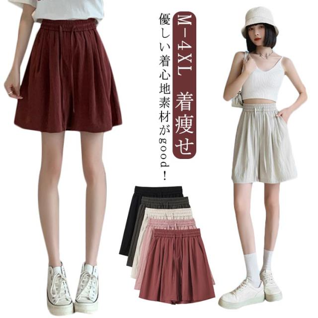 レディース ゆったり ショートパンツ 夏 ボトムス 着痩せ 短パン 無地 カジュアル 大きいサイズ ワイドパンツ ハイウエスト 体型カバー