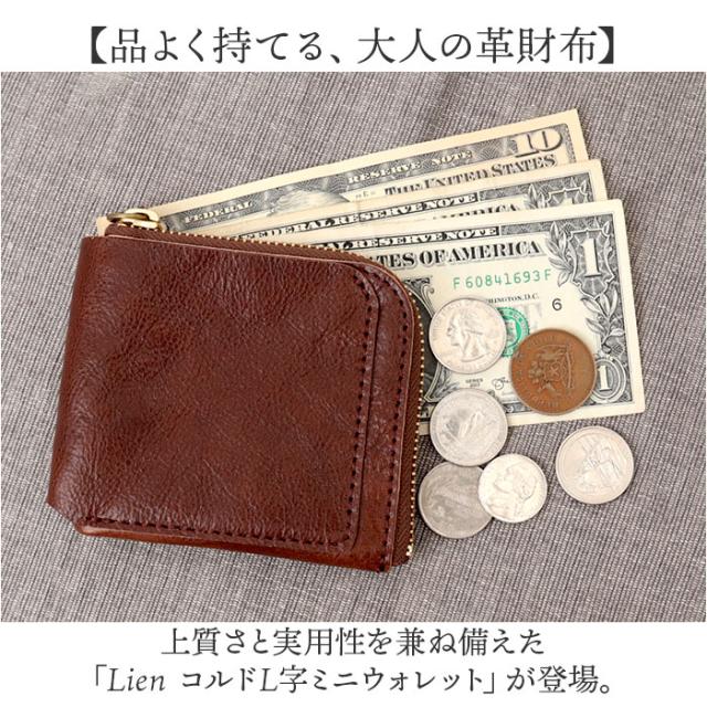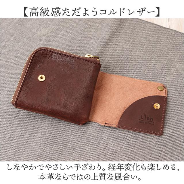 財布 二つ折り 本革 日本製 通販 二つ折り財布 2つ折り財布 折りたたみ財布 折り財布 本革財布 牛革財布 メンズ レディース 革 レザー カウレザー L字ファスナー コンパクト Lien リアン コルドL型ミニウォレット LT25100 男性 女性