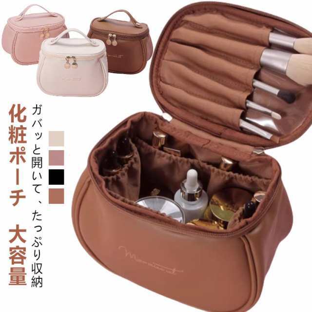 | ガバッと開いて、たっぷり収納 化粧ポーチ 大容量 普段使いのすべての化粧品(口紅、リップブロス、メイクブラシ、チーク、アイブロウ、アイシャドウなど)をきれいに収納できます。化粧道具だけではなく、小物入れとしてもおすすめです。 旅先で散らかりがちな洗面用品や化粧品類、アメニティグッズなどもまとめて収納! 内部には小物を細かく分けてキレイに収納できるポケットや、ブラシなどのスティックコスメなどの収納に便利なスペースも完備。 ダブルファスナー&フルオープンが可能なので、大きく開き、荷物もより取り出しやすいデザインに。 メインスペースにはボトルタイプのコスメなどの大きめ容器のものが収納できるたっぷり大容量デザイン。 小さな小物類の収納に便利なゴムポケットやフリーポケット付きべ、とっても便利。 持ち運びに便利はハンドル付き。 とても軽い素材で、生活防水の撥水加工が施されているので、汚れがついても拭き取りやすい。 大容量なので化粧ポーチだけでなく、旅行や普段の身の回りの収納にも。 丁寧な縫製でこだわってつくられているので丈夫なつくり。 | |