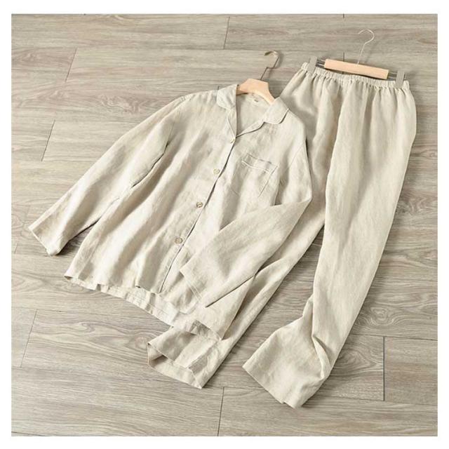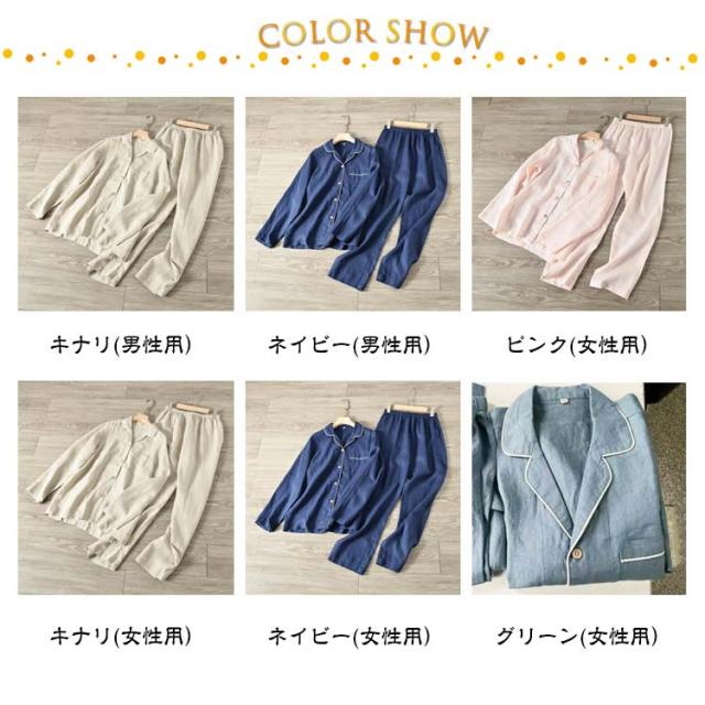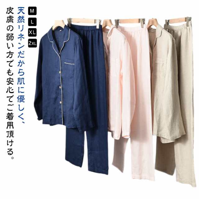 麻 パジャマ 前開き 長袖 リネン メンズ レディース カップル ペア ルームウェア 結婚祝い プレゼント ペアパジャマ 上下セット リネンパジャマ 母の日 ギフト vネック パンツ 寝間着 春 夏 秋 冬 寝巻き 部屋着 ナチュラル 薄手 麻