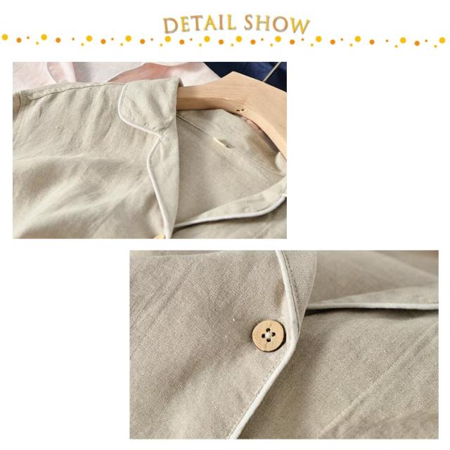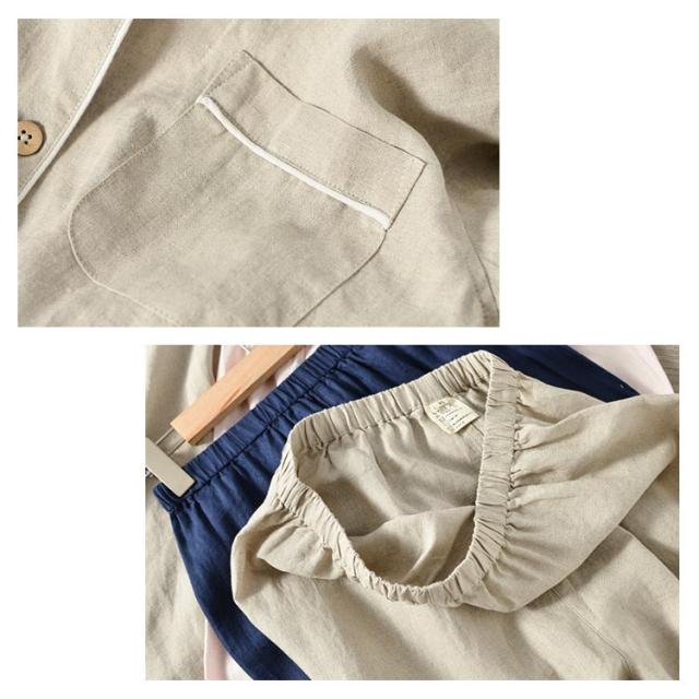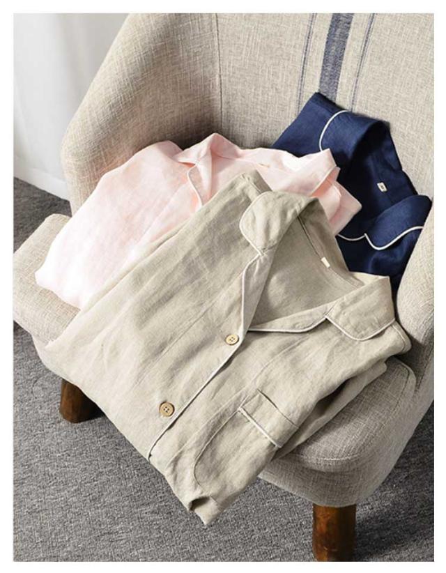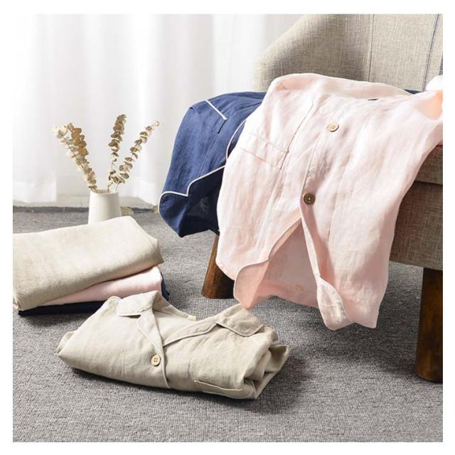 | 天然リネンだから肌に優しく、皮膚の弱い方でも安心でご着用頂ける。 軽くて動きやすくて清涼感あふれる上質麻パジャマ。 麻特有の涼しさと、ヒヤッとする冷感も魅力的です。 | |