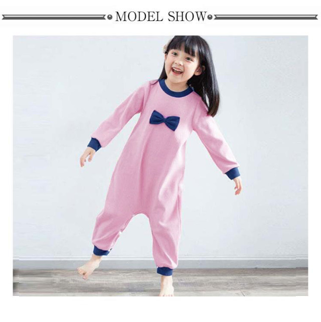 | ジュニアサイズまで展開!寝冷え防止のつなぎパジャマ! 90cmサイズから160cmサイズまでを取り揃え、小学生/中学生も着用できるようになっている。 つなぎタイプなので、寝ている間にお腹が冷えてしまう心配もありません。 肌触り優しい綿95%生地で、通気性・吸汗性も抜群、大切なお子様により快適な快眠を◎ 股下はスナップボタンで全開できるから、トイレやおむつ替えもラクラク! 可愛いリボンデザイン、ゆったりとしたサイズ感で、日中の部屋着としても活躍してくれそうですね。 | |