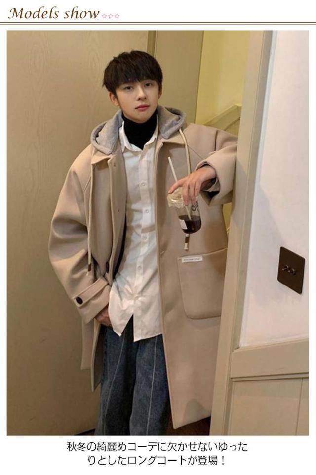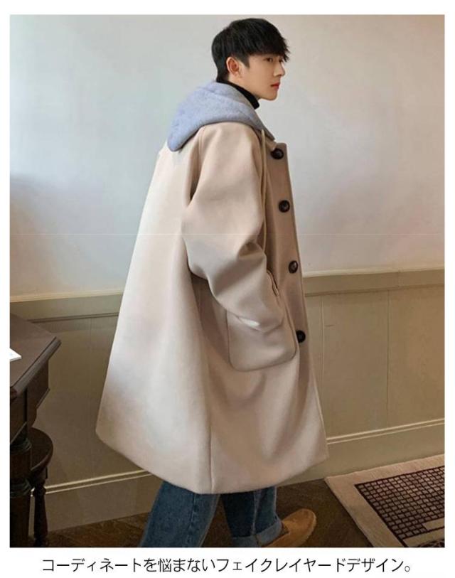 フード付き カジュアル 体型カバー チェスターコート ロングコート アウター コート 冬 大人男性 フェイクレイヤード メンズ コート 無地 ロング コート 暖かい コート アウター チェスターコート ロング 韓国 ファッション 通勤 通学 ギフト