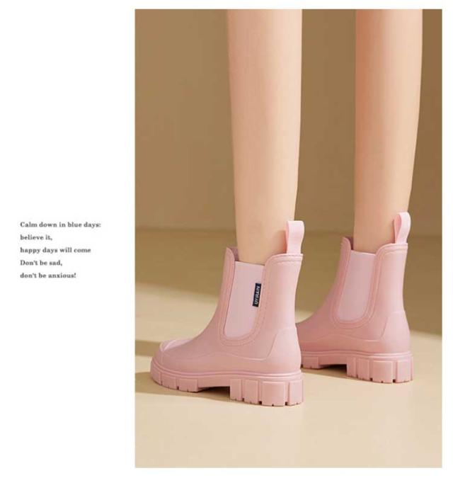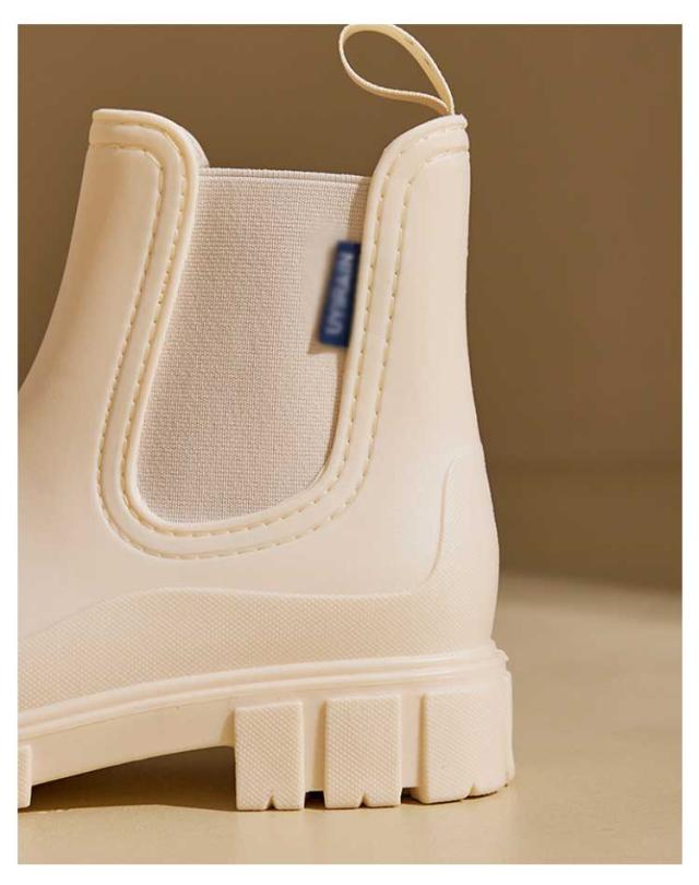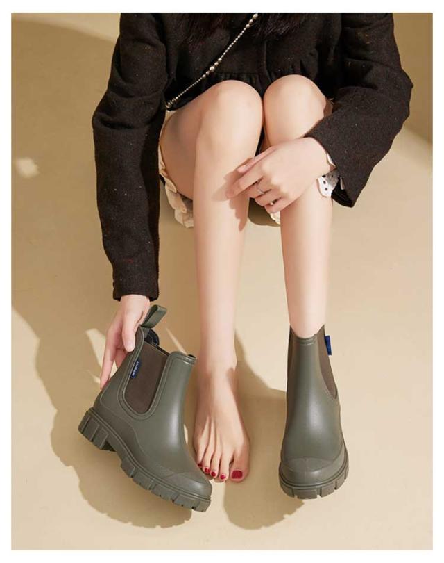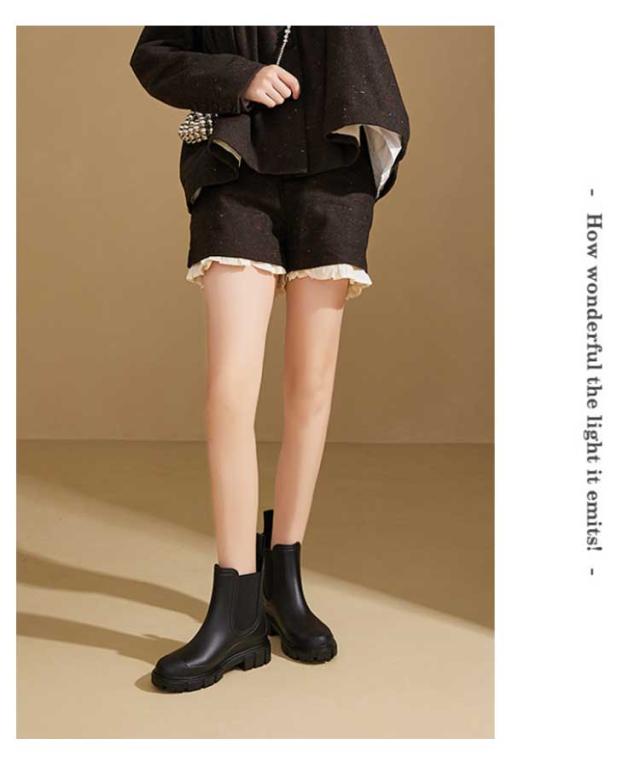 | 防水仕様でレインブーツにもなる雨晴兼用のサイドゴアショートブーツ。 厚底のバルキーソールは、脚長効果があり、スタイリッシュな印象に。 フィット感のサイドゴアデザイン。履き口では足型に合わせて伸縮し、フラフラ生地を採用し、素肌でも足通りなめらかで履きやすい。 より履き脱ぎことを実現するため、後ろに手持ち可能なデザインで、忙しい朝もすぼっと履けて、着脱楽々! 天然な特製ゴムで仕上げ、一体成形であるため、水が隙間から入り込む心配なし。 デコボコでグリップ力抜群!濡れた路面や駅、室内でも滑りにくい。 レインブーツとしての使用がもちろん、普段のファションにも合わせやすい。 | |