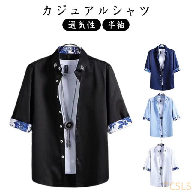夏服 かっこいい ゆったり 半袖 シャツ 七分袖 メンズ アイスシルク カジュアルシャツ メンズ 涼感 ワイシャツ シャツ サマー 紳士服 通勤 通気性 快適 軽い ビジネス カジュアル