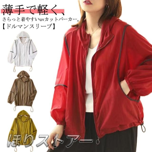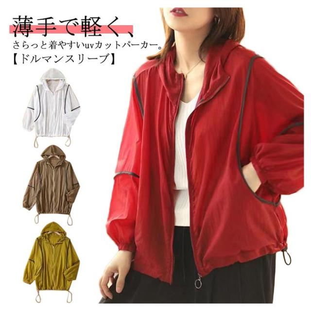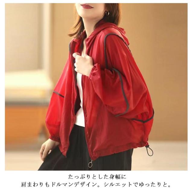マウンテンパーカー 日焼け止め ラッシュガード uvカット 速乾 接触冷感 涼しい レディース ジップアップ uv 虫除け 冷感 パーカー きれいめ UVパーカー 薄手 おしゃれ ドルマン 長袖 ゆったり 体型カバー ボリューム袖 大人 春夏 春 夏 ライトアウター