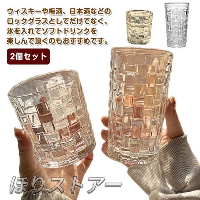 タンブラー ガラス 2個セット 麦茶 350ml ガラスカップ 酒器 クリア おしゃれ 300ml 冷茶 透明 ガラスコップ コーヒー 珈琲 カフェ風 コップ ミルク 北欧 高級感 グラス コップ 大きめ ロックグラス ガラス 食器 家庭用 ウィスキー タイル柄