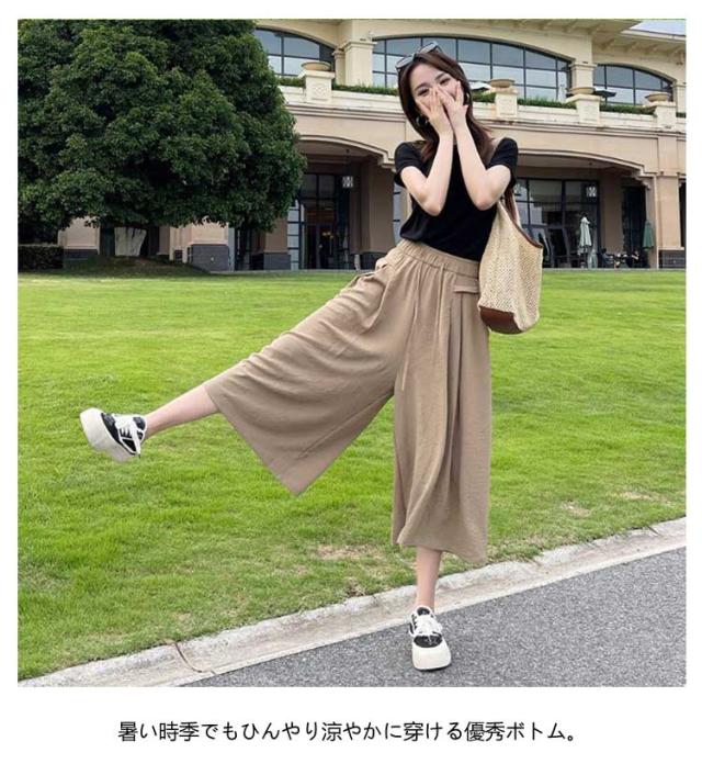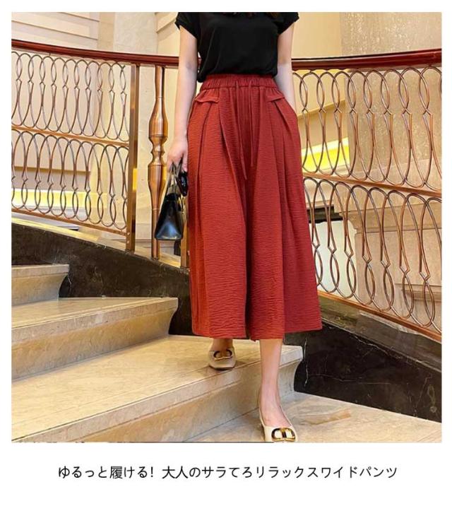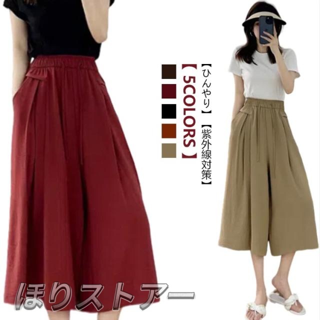 ボトムス ひんやり きれいめ ワイドパンツ リラックス 春夏 ゆったり パンツ 接触冷感 フレアパンツ 7分丈 ワイドパンツ 無地 軽量 旅行 涼しい 大きいサイズ 楽ちん 秋 軽い UVカット 紫外線対策 ドレープパンツ