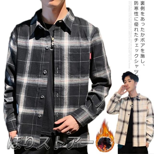 グレンチェックシャツ 裏ボア メンズ チェックシャツ 長袖 カジュアルシャツ 裏起毛 ボタンダウンシャツ 通勤 通学 ビジネスシャツ 厚手 防寒 暖かい あったか カジュアル トップス アウター チェック柄 お洒落 ゆったり 韓国風 冬 新作