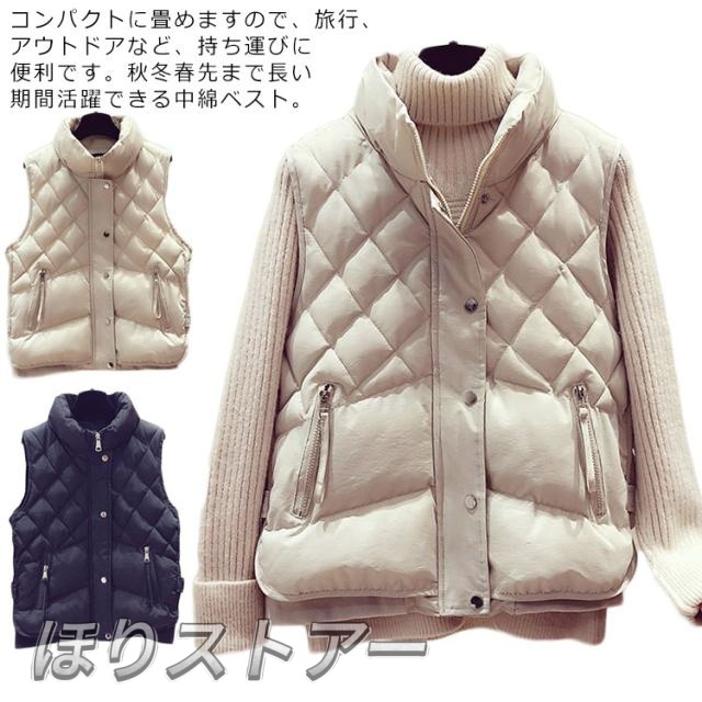 中綿ベスト わた入りベスト ダウンベスト レディース 可愛い ベスト 無地 シンプル ショート丈ベスト 防寒 暖かい 春秋冬 立ち襟 カジュアルベスト ノースリーブ 通勤 通学 可愛い 新作